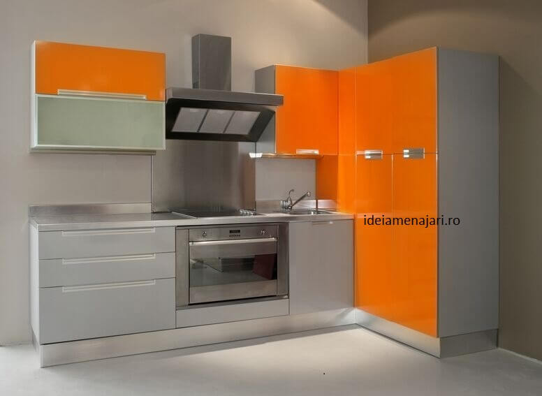 Lasa-te inspirat de aceasta bucatarie mica si indrazneste in amenajari interioare. Foloseste culoarea portocaliu in bucatarie, deoarece este o culoare ce inspira vitalitate, modernism si mult bun gust.
