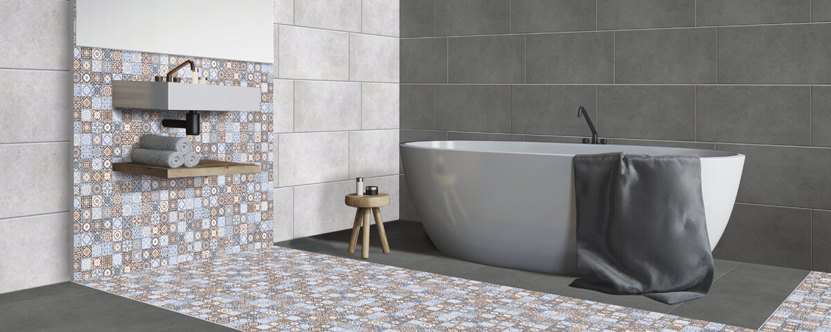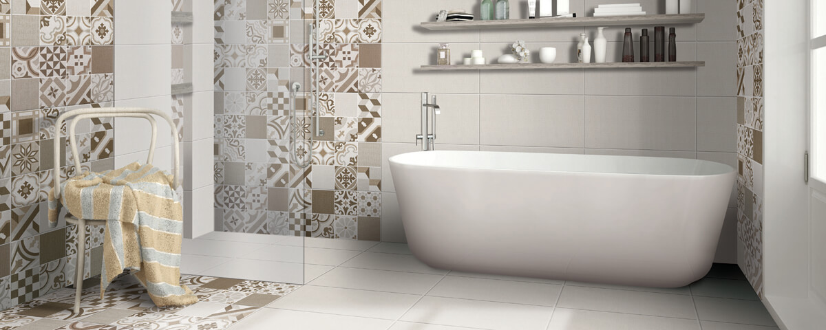 Colectia Fine Textile. Este o gresie care se poate placa si pe pereti obtinand amenajari perfecte . Decorurile cu imprimeuri geometrice plasate strategic in zone cu impact iti vor face baia sau bucataria un spatiu primitor si in tendinte.