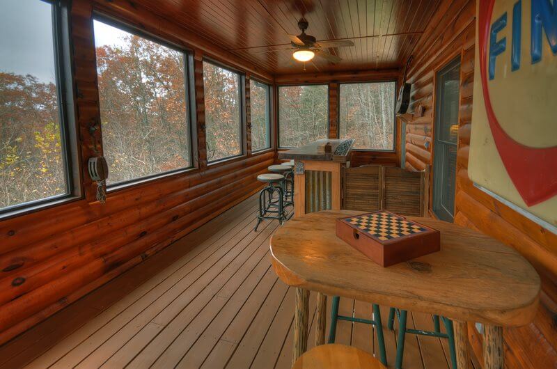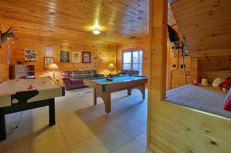 Pe langa camerele indispensabile pentru o casa de vacanta mai regasim in interiorul acestei cabanute din lemn si cateva spatii de agrement. O sala unde se pot juca diverse jocuri, un spatiu pe terasa numai bun pentru a citi, o zona de leagane si o mica piscina.