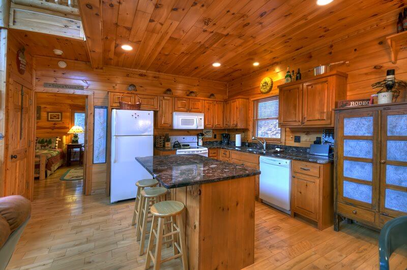 Bucatarie mare, curata, aerisita si pusa in valoare de farmecul lemnului.